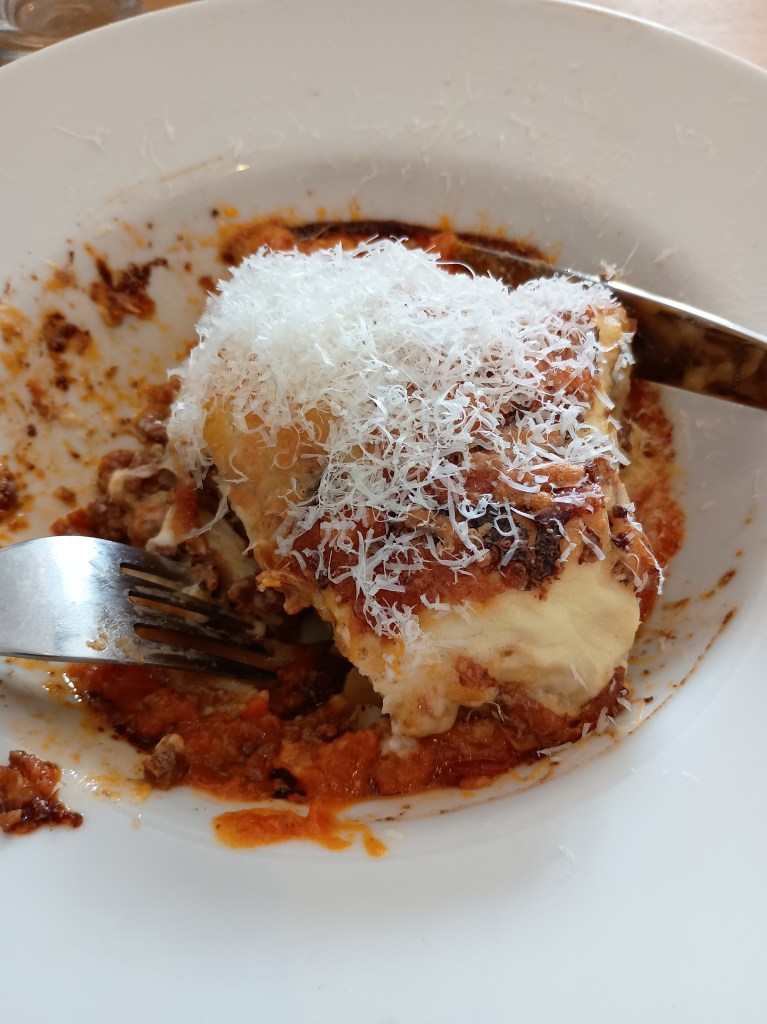 As for me, by 8 PM, the lasagne was still sitting in my stomach like a concrete block. Light lunch, it was not.